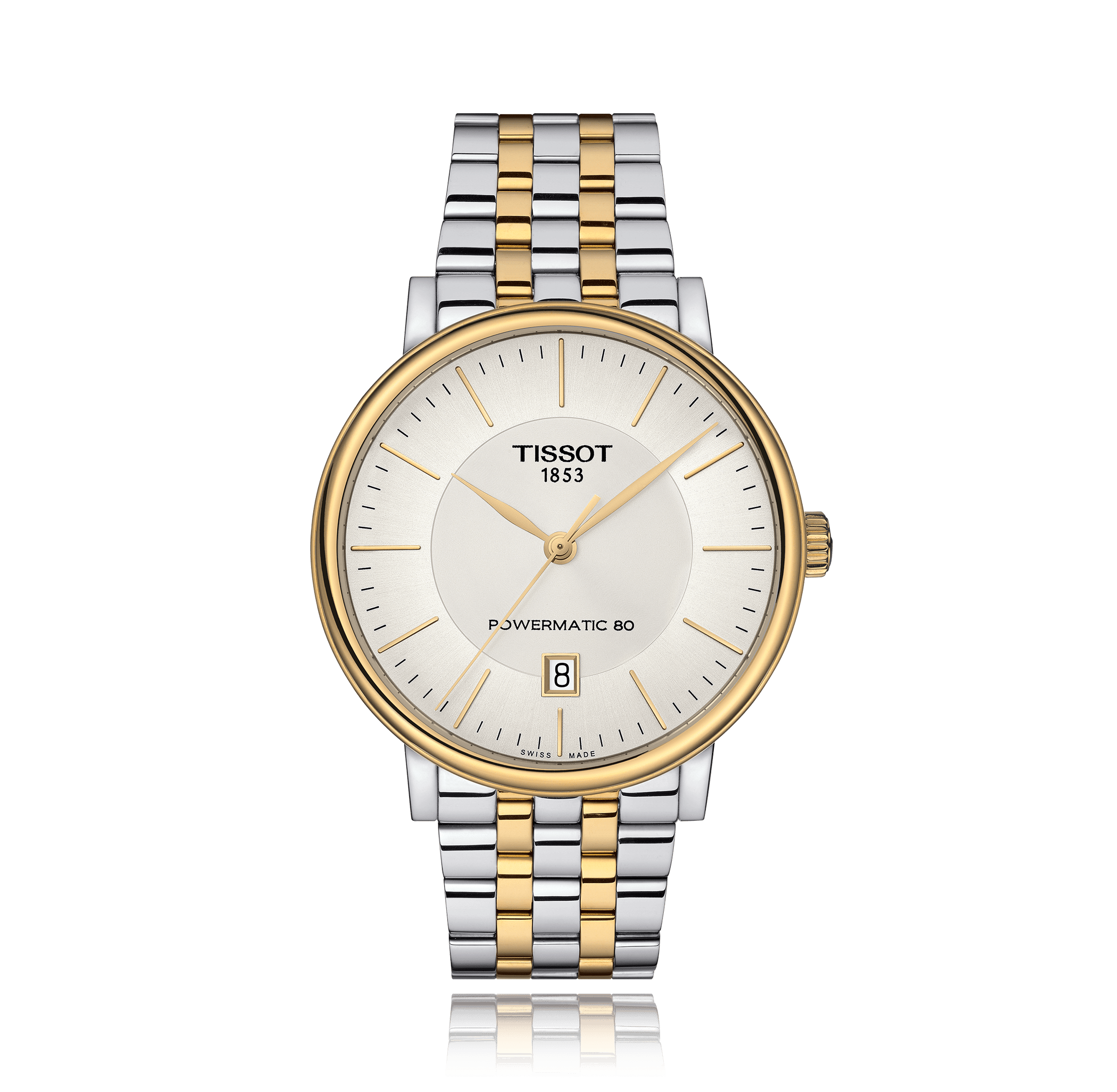 Wristwatch TISSOT T-Classic Carson, 40mm, steel/PVD, steel bracelet, with folding clasp, silver dial with index, automatic Cal. POWERMATIC 80.111, sapphire-crystal, 5 atm, Ref.:T122.407.22.031.00