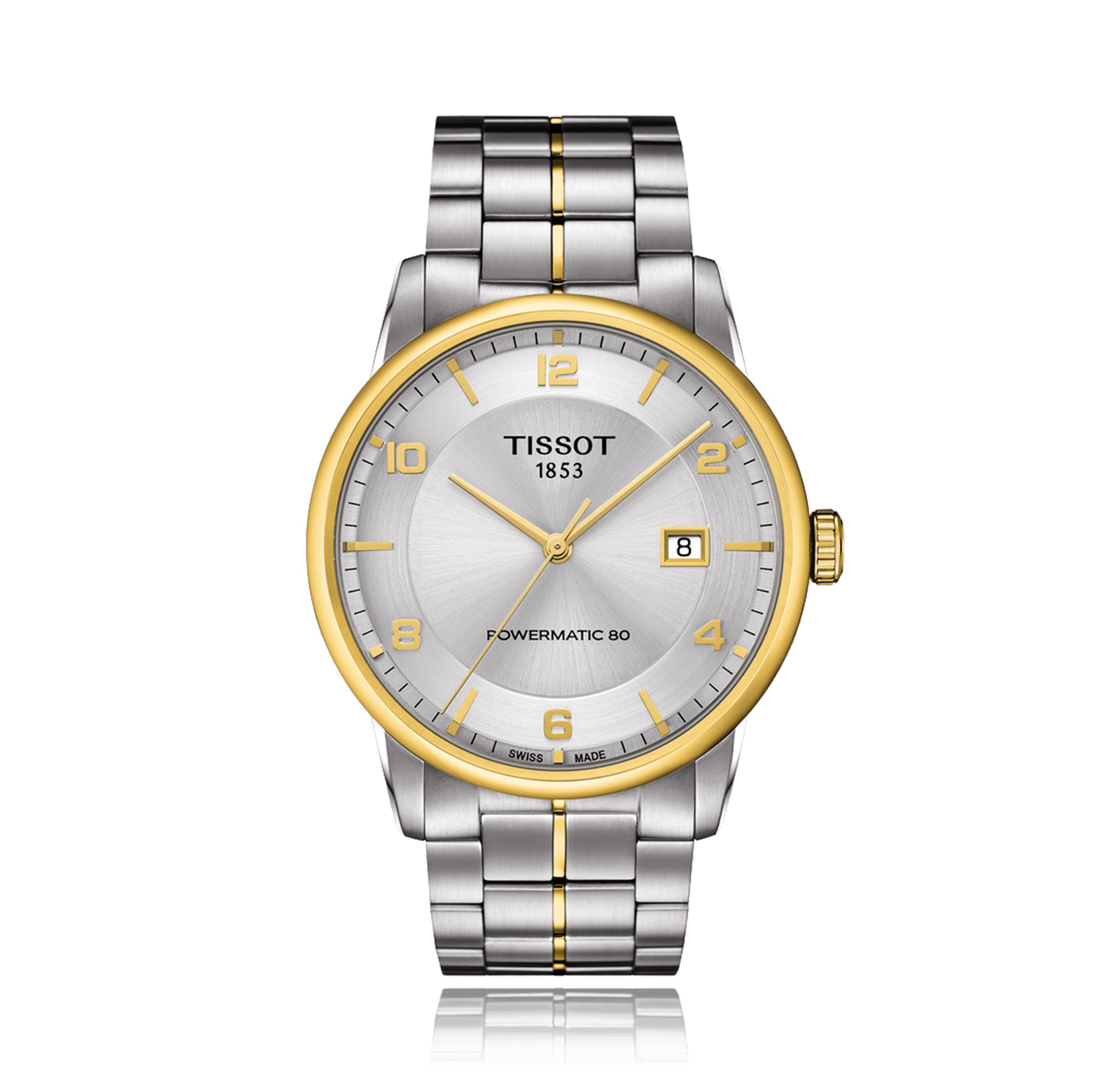 Wristwatch TISSOT T-Classic Luxury Powermatic 80, 41 mm, PVD/steel, steel/PVD bracelet, with folding clasp, silver dial with arab./Index, automatic Cal. Powermatic 80, sapphire-crystal, 5 atm, Ref.:T086.407.22.037.00