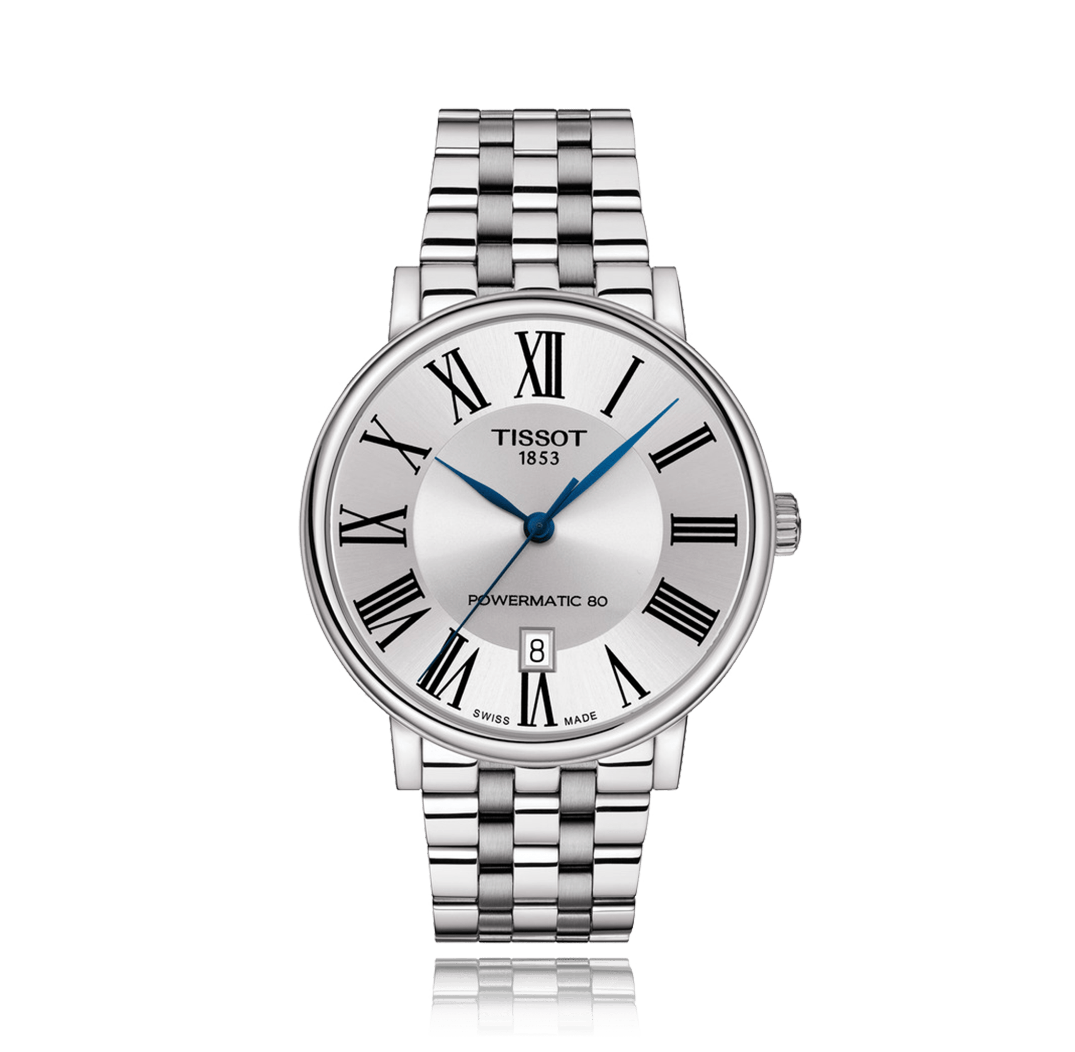 Wristwatch TISSOT T-Classic Carson, 40 mm, steel, steel bracelet, silver dial with romains, automatic sapphire-crystal, Ref.:T122.407.11.033.00