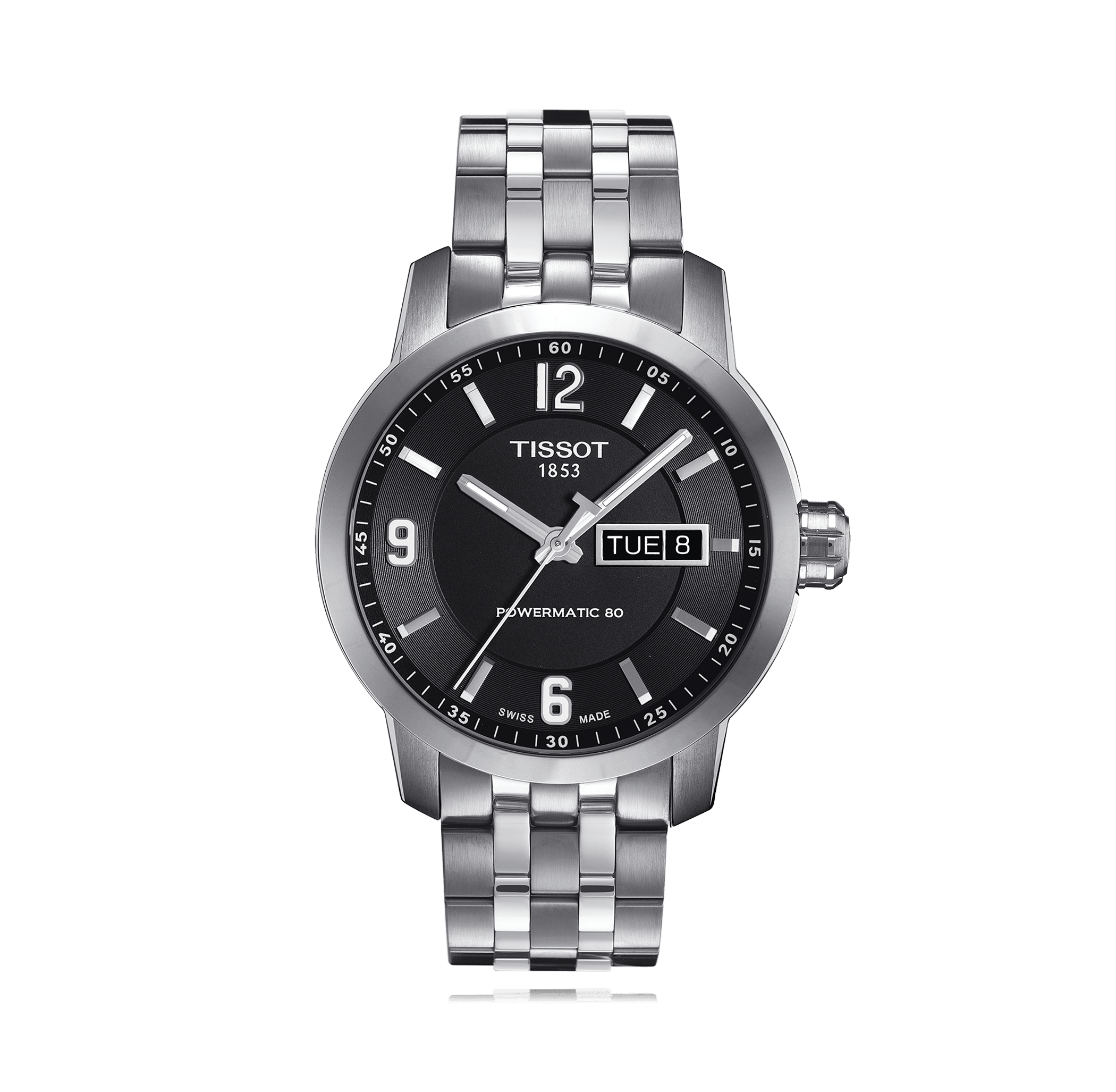 Wristwatch TISSOT T-Sport PRC 200, steel, steel bracelet, with folding clasp, black dial with arab./Index, automatic Cal. ETA 805.112, sapphire-crystal, 20 atm/screw-down crown, Ref.:T055.430.11.057.00