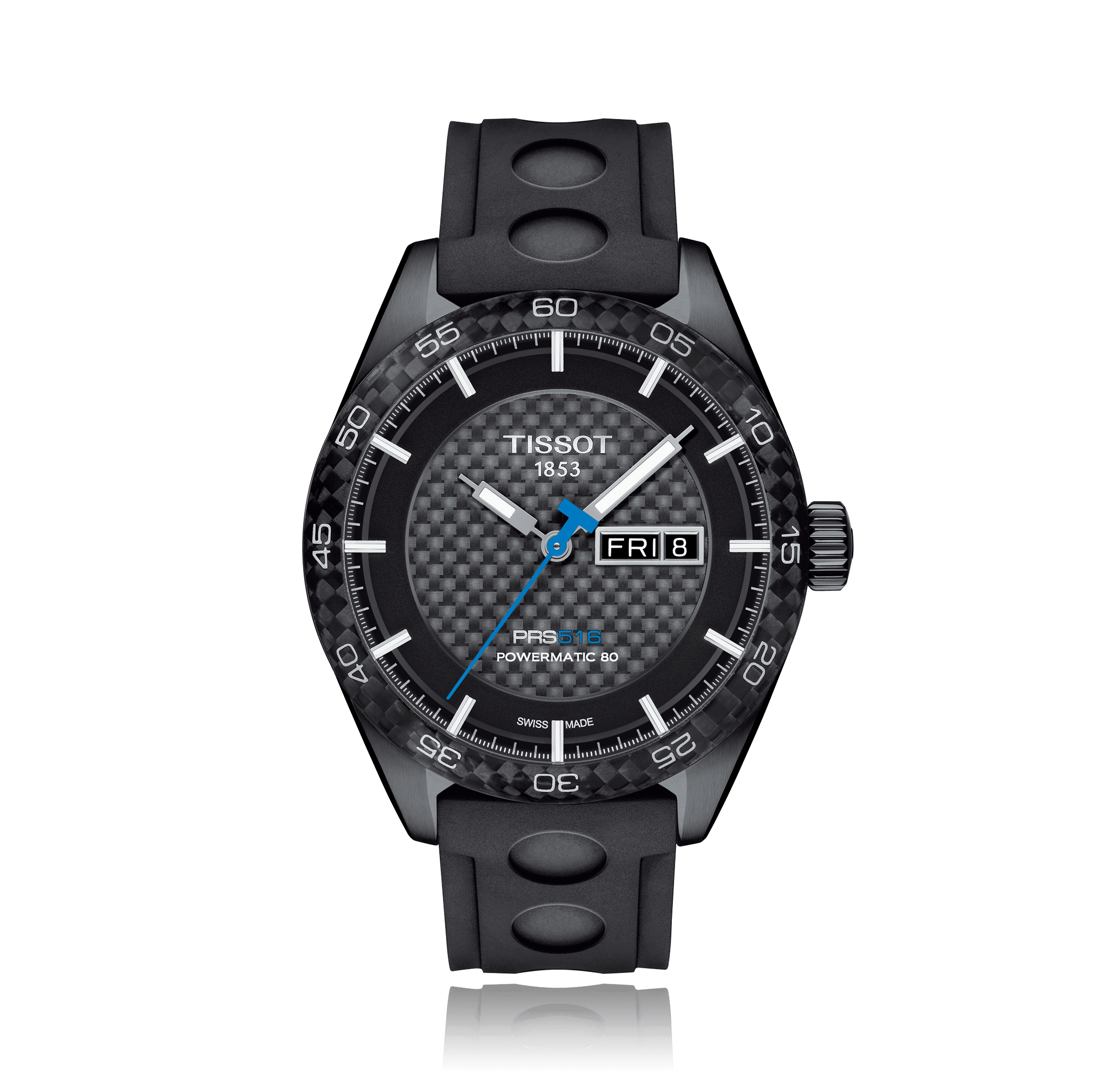 Wristwatch TISSOT T-Sport PRS 516, 42mm, Carbon, silicone bracelet, carbon dial with index, automatic Cal. Powermatic 80, sapphire crystal anti-reflection both sides-crystal, 10 atm, Ref.:T100.430.37.201.00