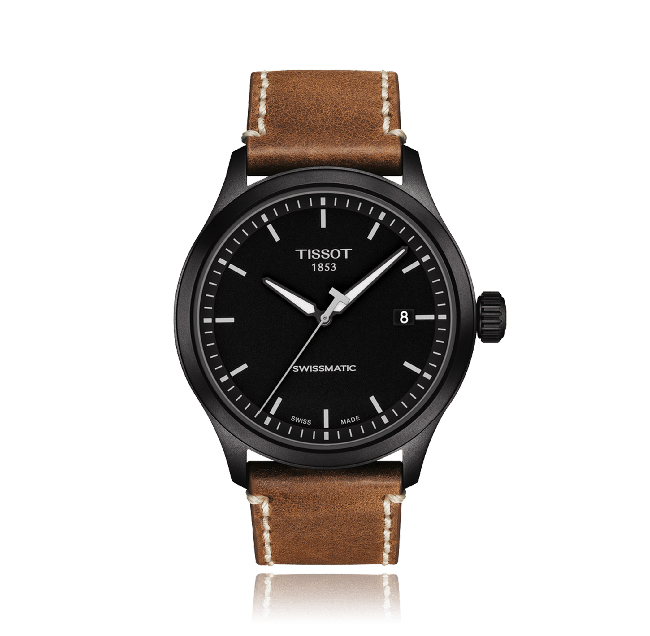 Wristwatch TISSOT T-Sport Gent XL, 43 mm, PVD, leather strap, with pin buckle, black dial with arabic, automatic Cal. Swissmatic, sapphire-crystal, 10 atm, Ref.:T116.407.36.051.01