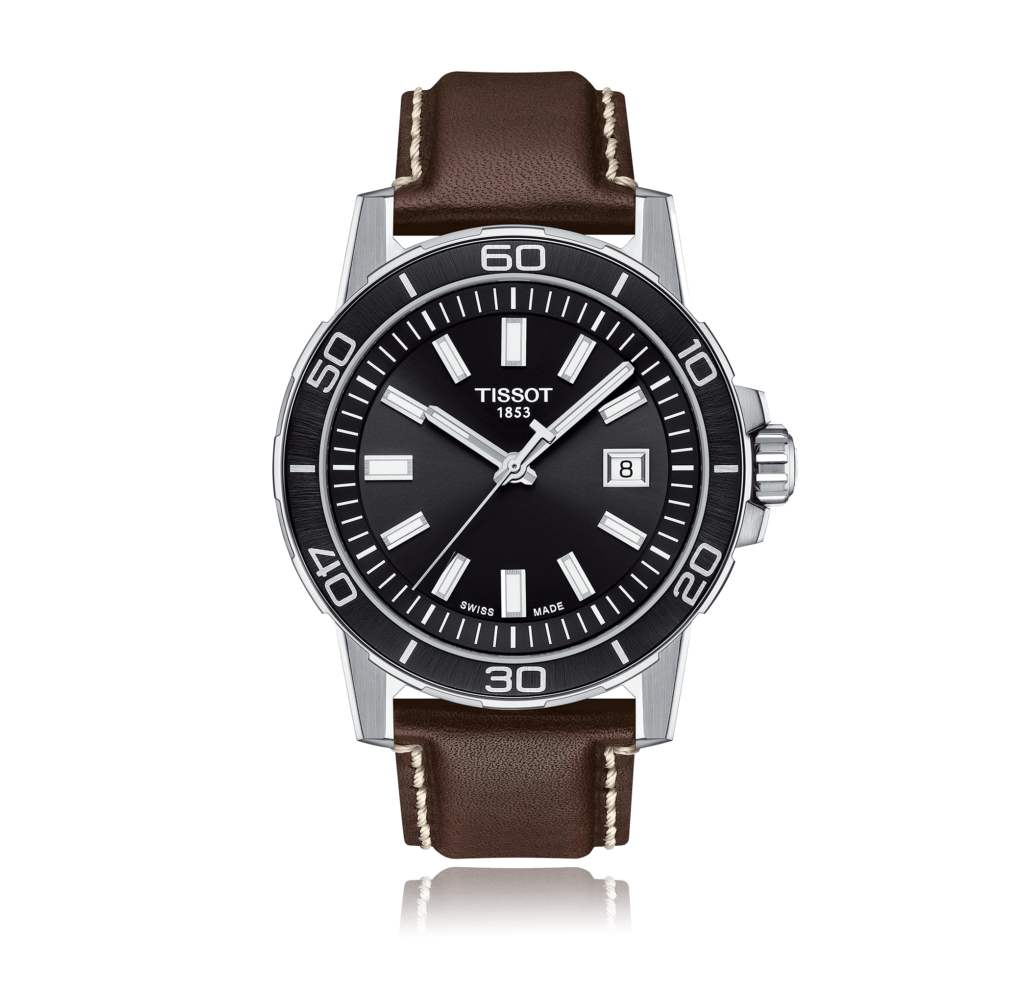 Chronograph, TISSOT T-Sport Supersport Chrono, 44 mm, steel, leather strap, with pin buckle, black dial with index, automatic, Cal. G10.212, sapphire-crystal, 10 atm, Ref.:T125.610.16.051.00