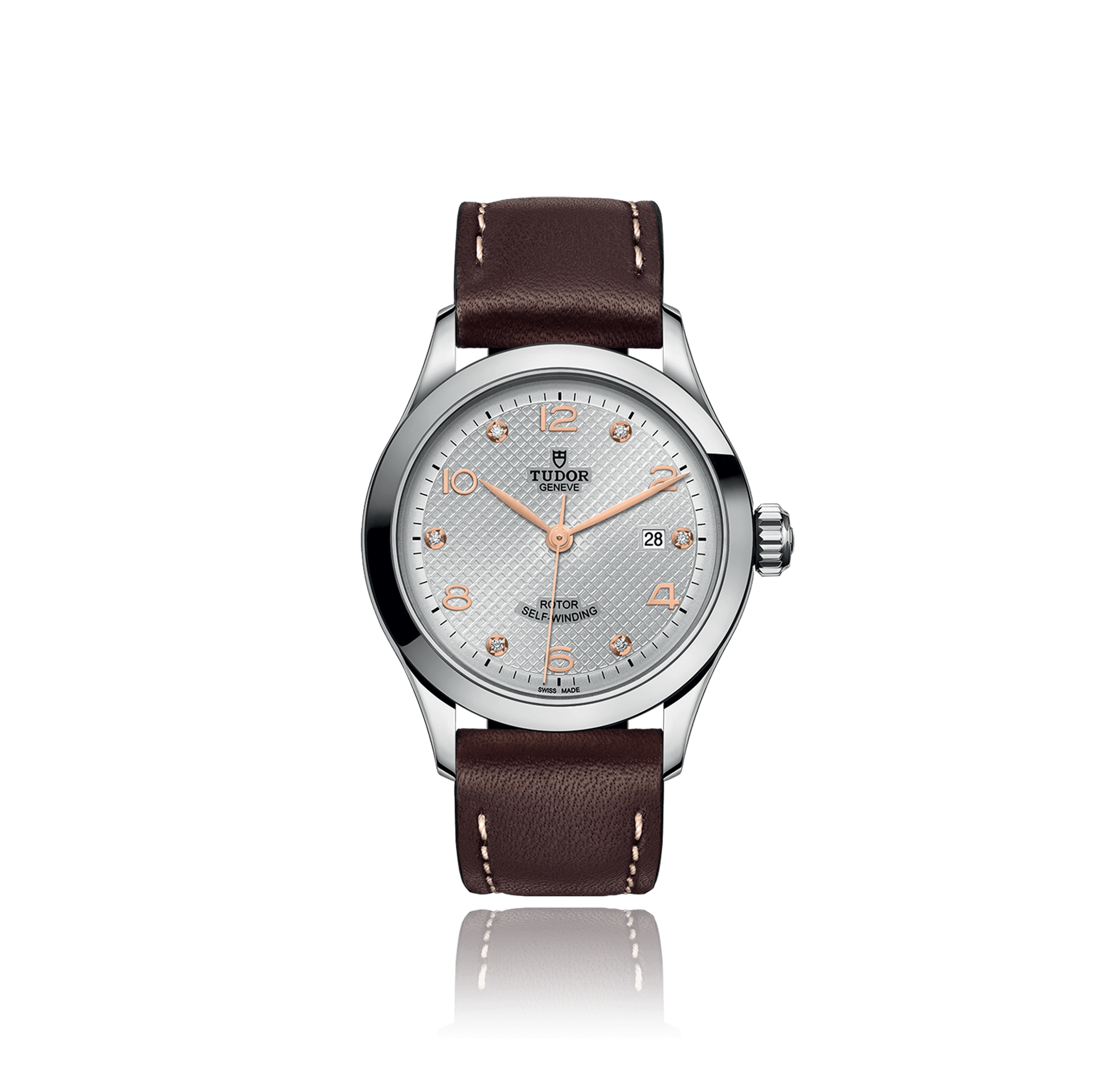 Wristwatch TUDOR 1926 28 mm, steel, leather strap, silver dial with arabic / diamonds, automatic Cal. T201, sapphire-crystal, 10 atm, Ref.:91350-Lederband