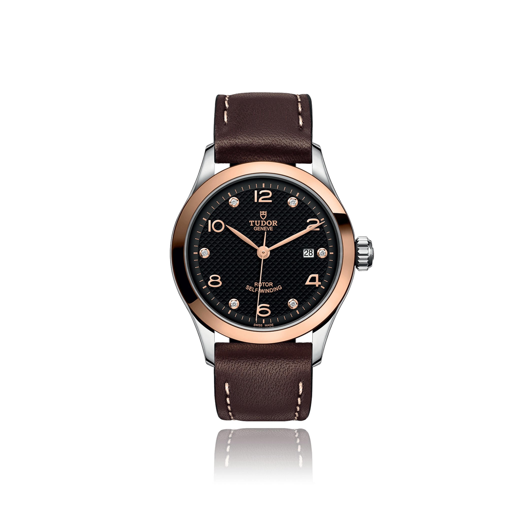 Wristwatch TUDOR 1926 28 mm, steel/red gold, leather strap, black dial with arabic / diamonds, automatic Cal. T201, sapphire-crystal, 10 atm, Ref.:91351-Lederband