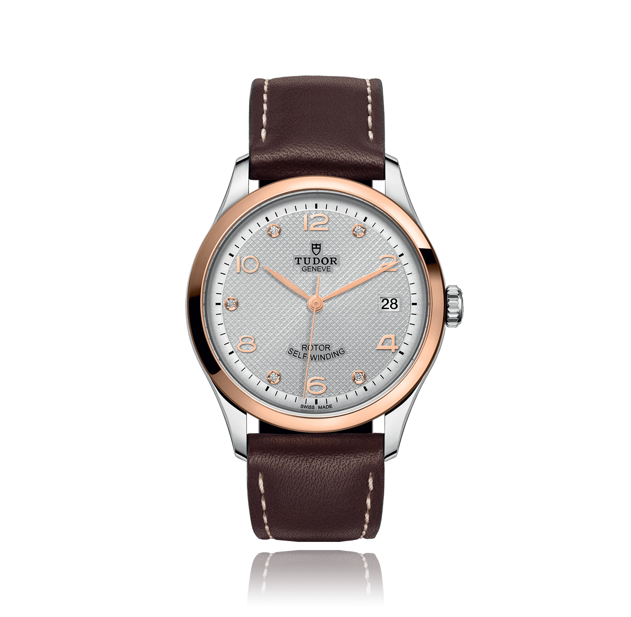 Wristwatch TUDOR 1926 36 mm, steel/red gold, leather strap, silver dial with arabic / diamonds, automatic Cal. T601, sapphire-crystal, 10 atm, Ref.:91451-Lederband