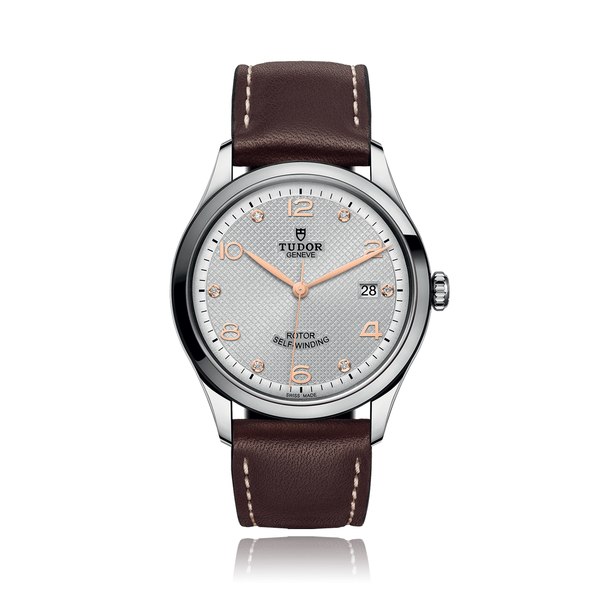 Wristwatch TUDOR 1926 39 mm, steel, leather strap, silver dial with arabic / diamonds, automatic Cal. T601, sapphire-crystal, 10 atm, Ref.:91550-Lederband