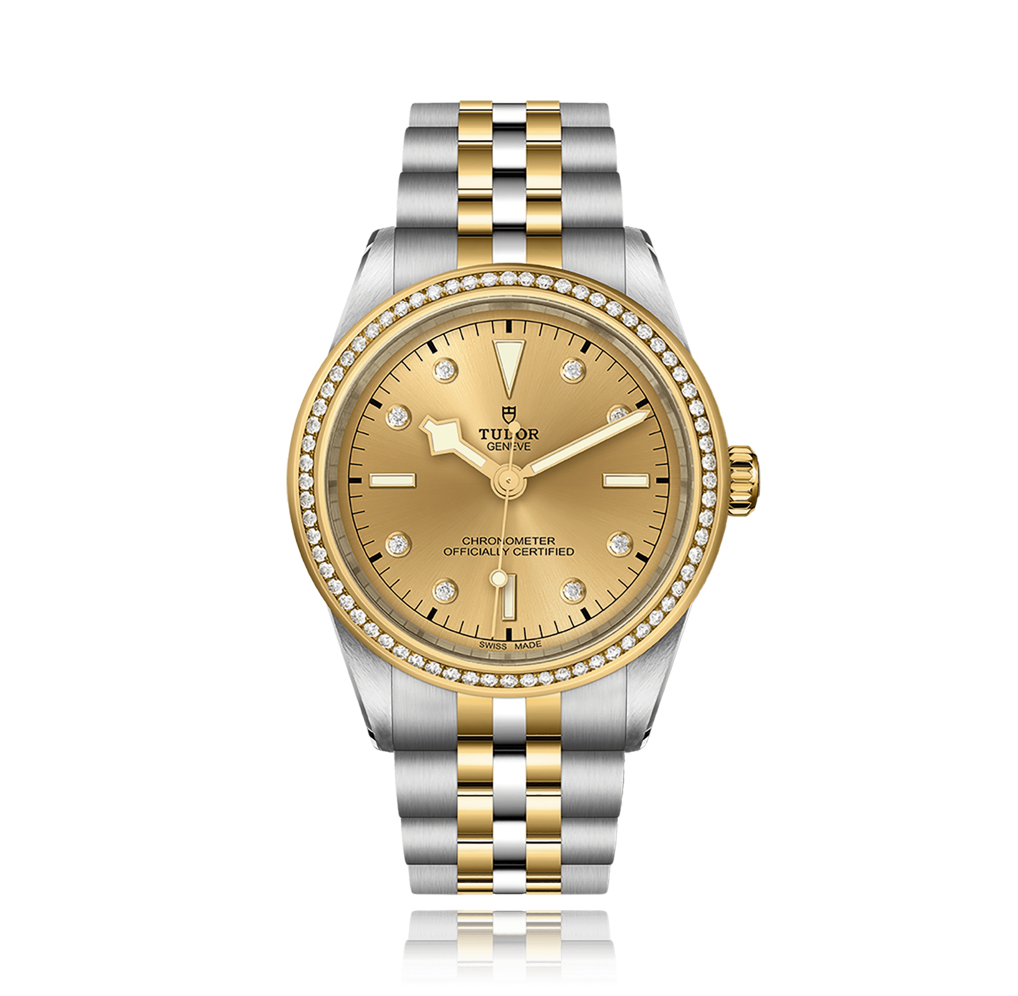 Wristwatch, TUDOR Black Bay 39 S&G, 39 mm, steel/yellow gold,. steel/gold bracelet, champagne dial with index / diamonds, automatic, Cal. MT5602, centre seconds, sapphire-crystal, 10 atm/screw-down crown, Lünette: mit Diamanten Ref.:79673-65573