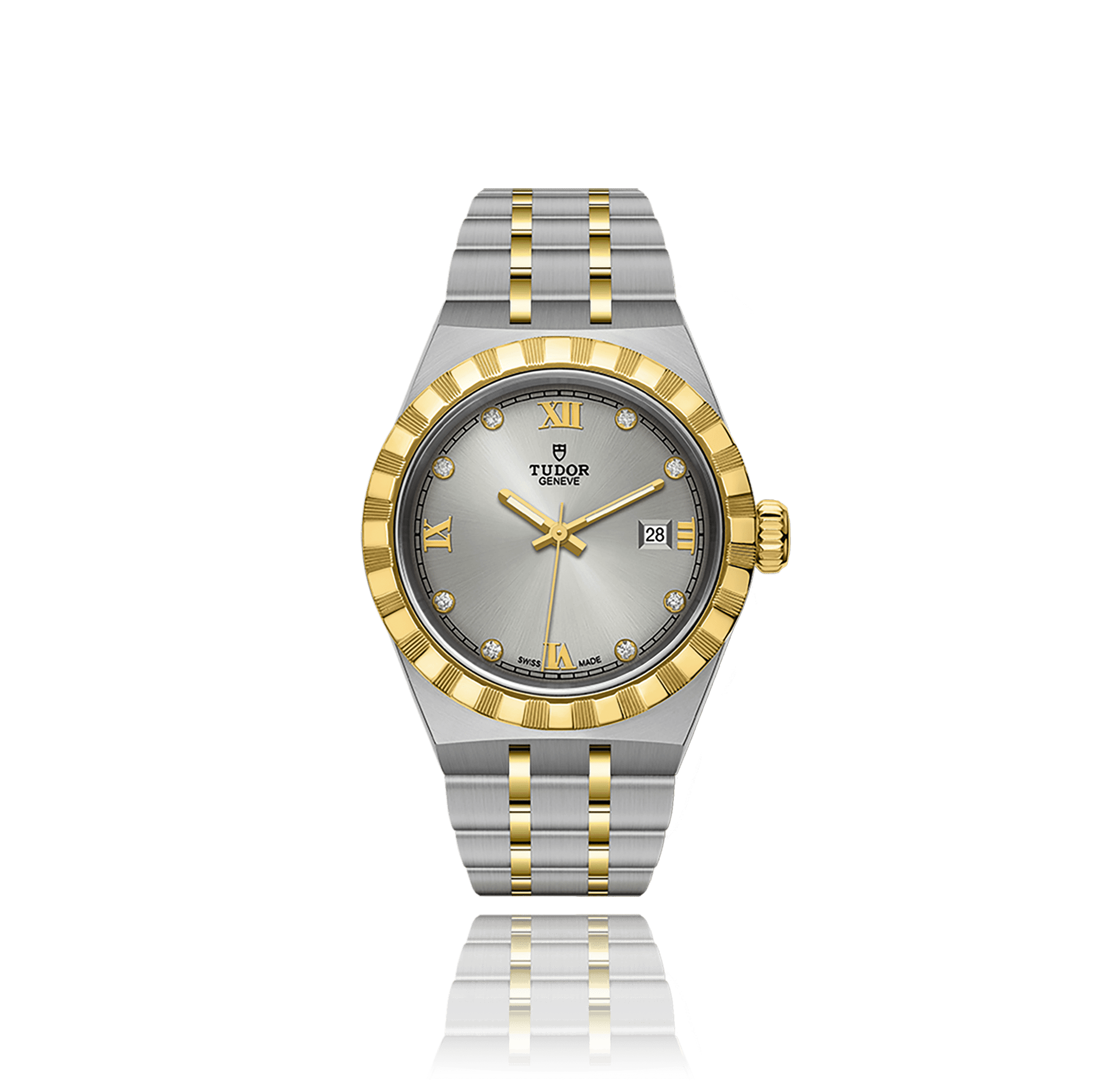 Wristwatch, TUDOR Royal Date 28, steel/yellow gold,. steel/gold bracelet, silver dial with roman / diamonds, automatic, Cal. T201, sapphire-crystal, 10 atm, Ref.:28303-91033
